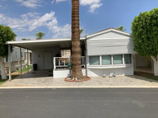Has an Arizona room. It is tiled, it also has a fold out bed, a closet, a shelving unit & a washer/dryer.